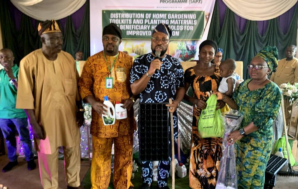 ‘’ This improves nutrition, reduces food bills and even creates surplus for income generation. Under this intervention, selected households who have been trained by SAPZ on home garden in Four (4) Local Government Areas in Ogun State will receive gardening tool kits tailored to small-space(backyard) farming, improved seedlings and planting materials, suitable for the agro-ecology. This is not just handout, it is a seed of independence which we hope will grow into a culture of productivity across homes in our State, ‘’ he said.